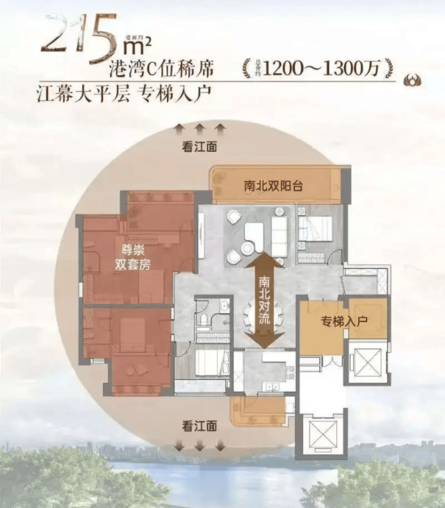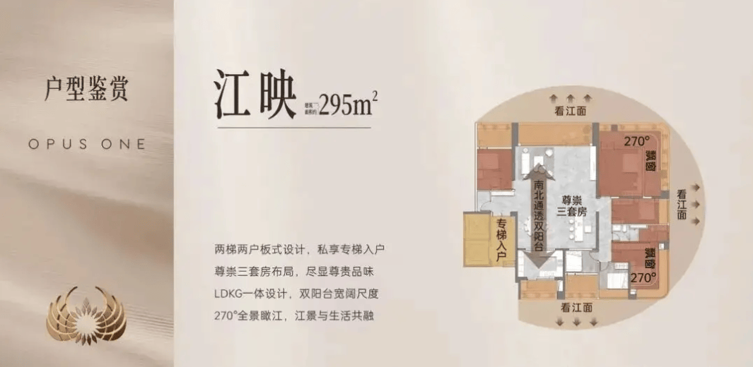 建面二百一十至二百一十五平方米的四房两厅三卫为双从套设想,配备家政间,很是适合二孩家庭,总价约一千五百万元起,为多代同堂的家庭供给了宽敞舒服的栖身空间。建面二百九十五平方米的天际大平层仅剩四套,两梯两户板式设想,五房三从套,俯瞰江景视野无敌,是城市塔尖人士的专属领地。此外,还有建面四百五十五平方米和五百八十五平方米的超大户型,一层一户,十三层小高层设想,二百七十度一线无遮挡江景,局部空间可定制,满脚终极置业需求,彰显了栖身者的卑贱身份取不凡品尝。