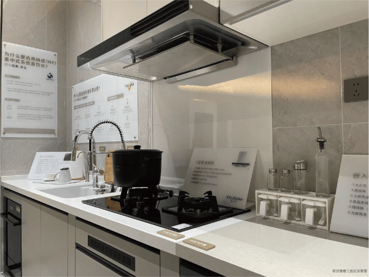 【客堂空间 精奢舒服设置装备摆设】客堂铺的是日本大建的地板,环保且合用于地暖。墙纸是东理的,被誉为“能擦拭的墙纸”,同样达到F4星环保尺度,还有抗菌防污涂层,家里有小孩也不消担忧。【精美厨境 烹调夸姣“食”光】厨房设置装备摆设可谓奢华。水槽是人制石大单槽,耐热好打理,并且台面和水槽无缝拼接,没有卫角。龙头是托客乐思的抽拉式,清洗水池角落很是便利。烟机灶具等次要电器用的是日本富士帝的品牌。