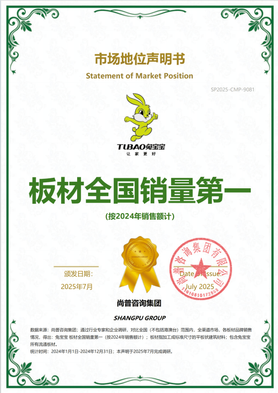 目前,兔宝宝已正在全国结构跨越6000店,并全面笼盖定制+、家具厂、家拆、工拆、乡镇等多种渠道,精准响应各地消费者的多元化需求。恰是这种强大的渠道渗入力取终端办事能力,奠基了兔宝宝板材正在全国销量第一的地位,使冠军质量实正触达千家万户。