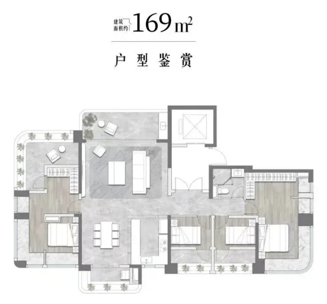 建面一百六十八至一百七十平方米的四房两厅两卫是从力户型,采用了典范的竖厅设想,客堂开间达四点二米,双卫生间设置装备摆设,可以或许满脚三代同堂的栖身需求,让家庭之间既有互动的空间,又有的现私。建面一百七十五平方米的四房双阳台双套房设想,七开间朝南,约二十米的南向采光面,通风度光俱佳,让阳光和清风成为家里的常客。建面一百八十二平方米的四房,南向开间约十六点六米,搭配六点四米宽景阳台,从卧带二百七十度转角飘窗,部门房源可江景,将珠江的绚丽景色尽收眼底,带来极致的视觉享受。